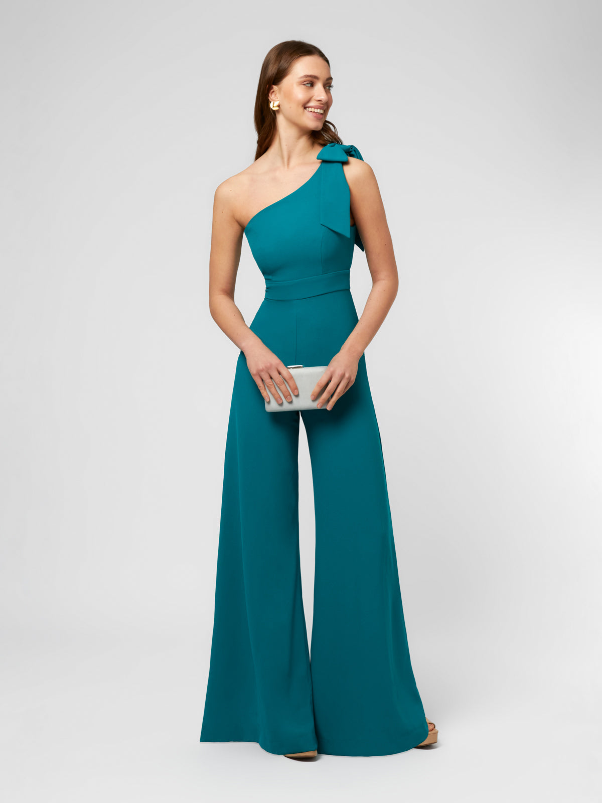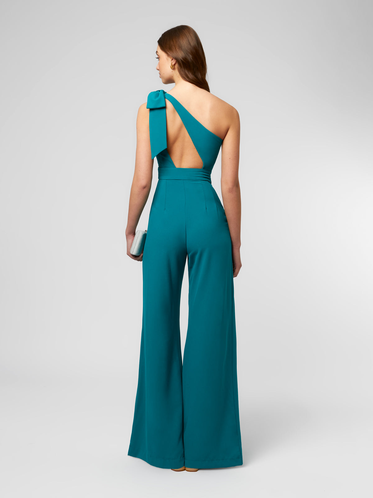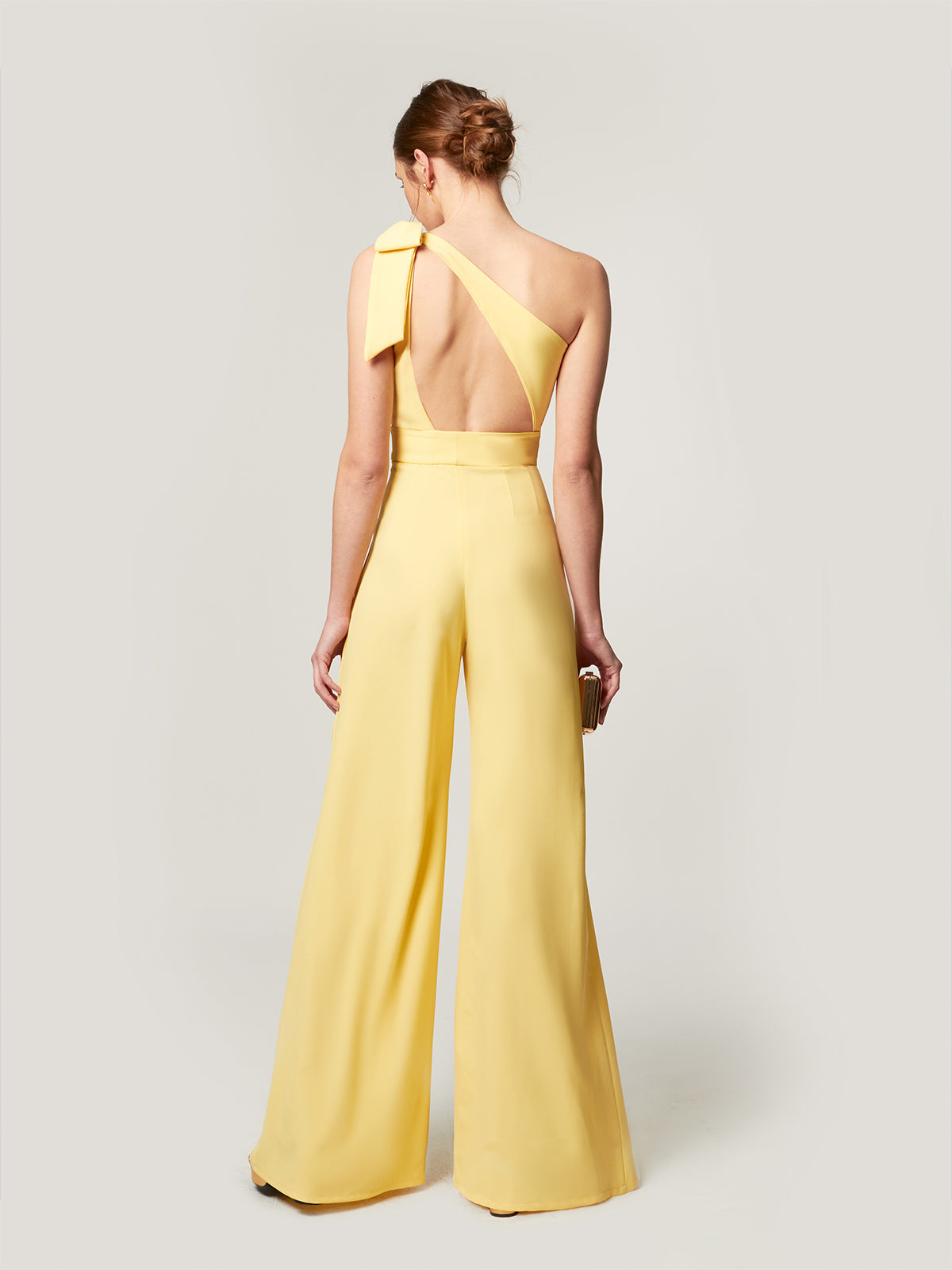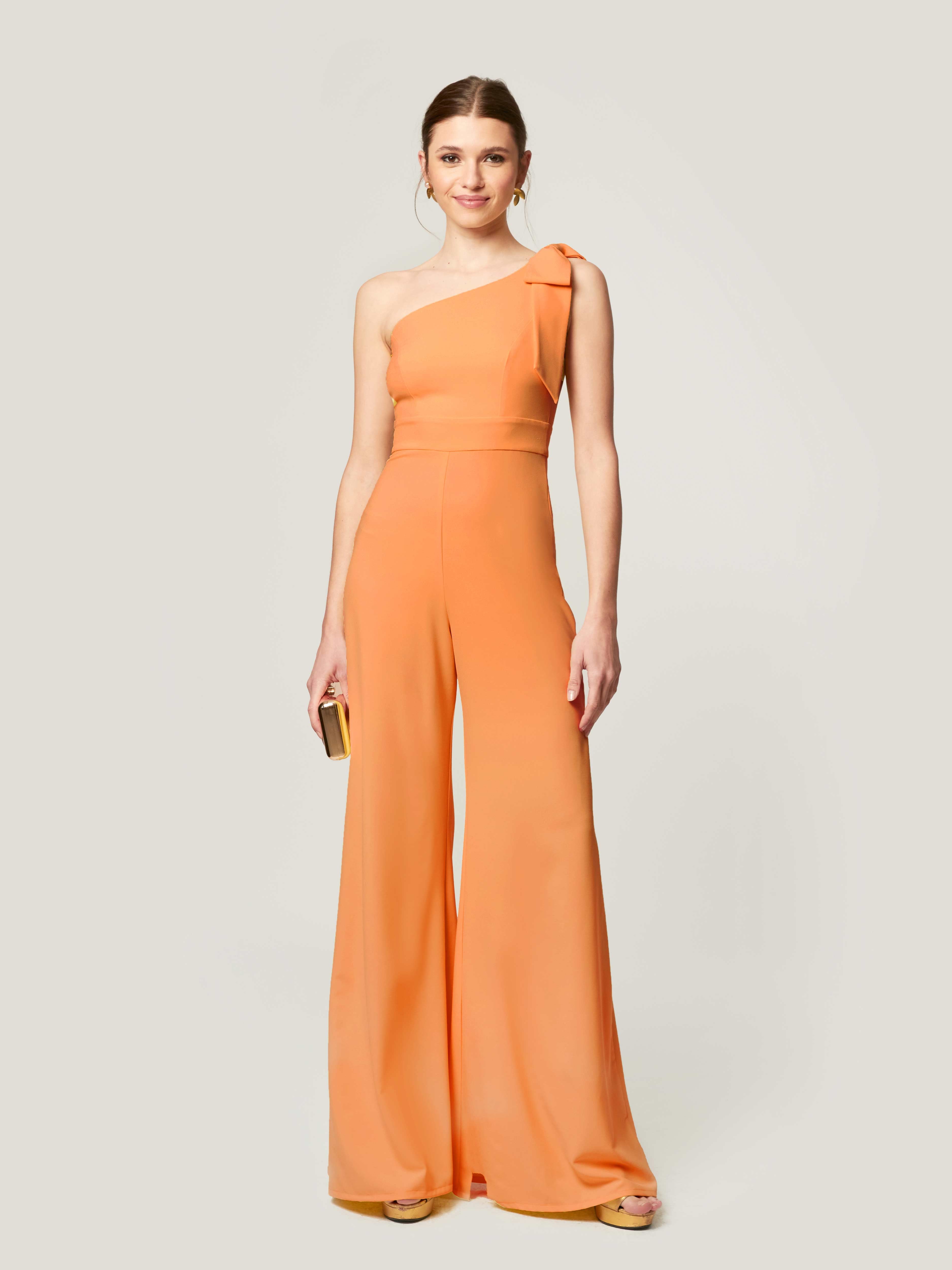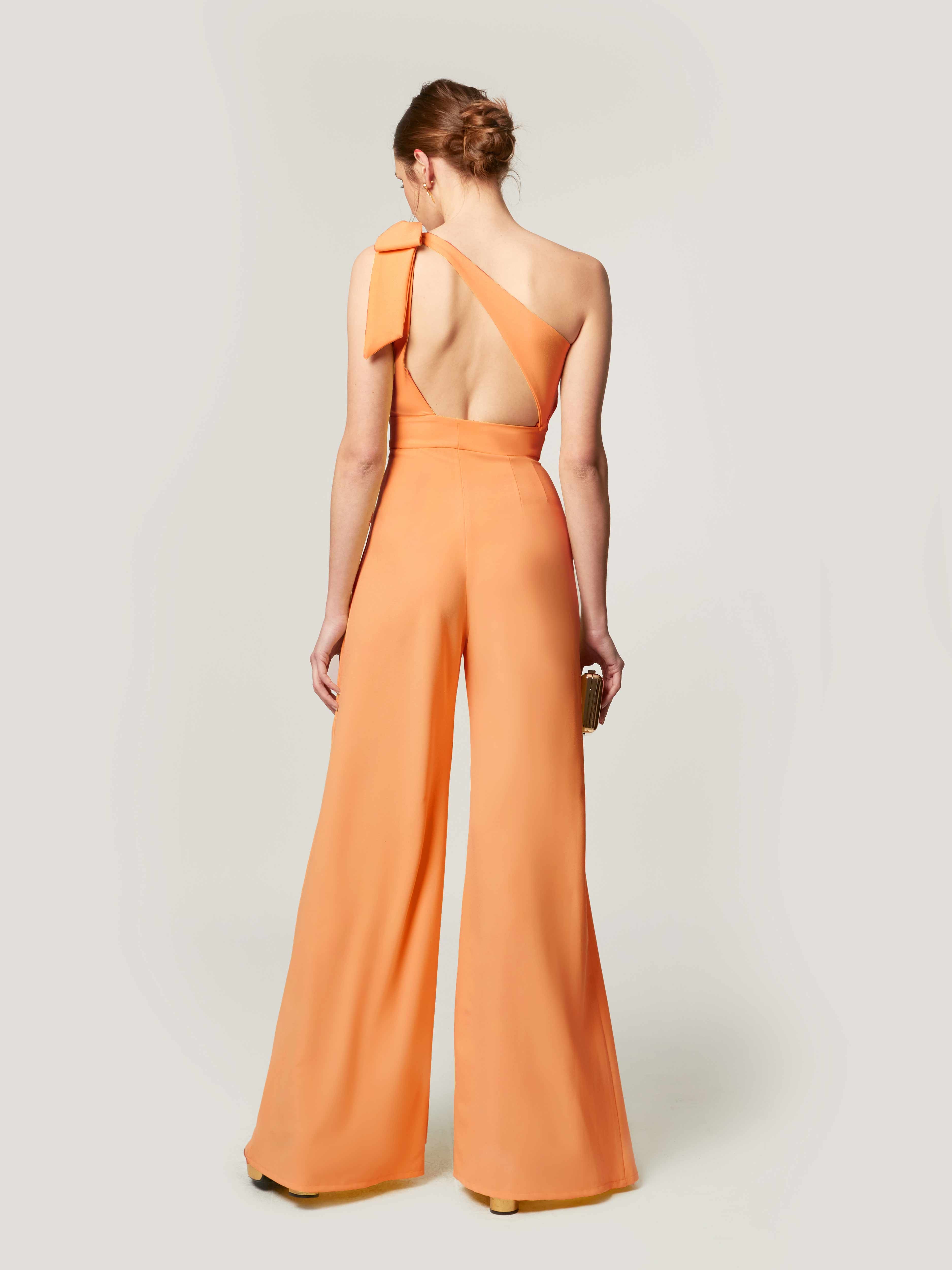 Der Alba Jumpsuit ist ein modernes und raffiniertes Stück, das Komfort und Stil vereint. Sein asymmetrischer Ausschnitt und der offene Rücken verleihen ihm eine feminine und elegante Note, während die Palazzohose die Taille betont und die Silhouette streckt, wodurch ein fließender und schmeichelhafter Fall bei jeder Bewegung entsteht. Vielseitig und schick ist dieser Jumpsuit perfekt für Hochzeiten, Abendessen, Partys und andere besondere Anlässe, tagsüber oder abends. Eine ideale Wahl für alle, die einen raffinierten, bequemen und präsenten Look suchen, der Sie mühelos selbstbewusst und elegant fühlen lässt.