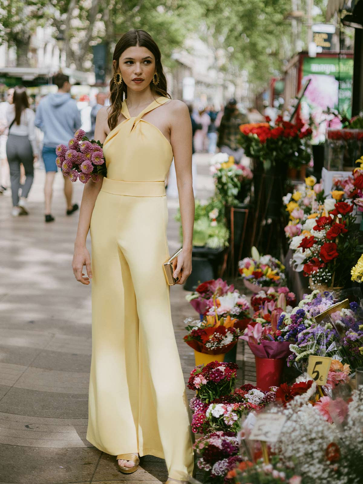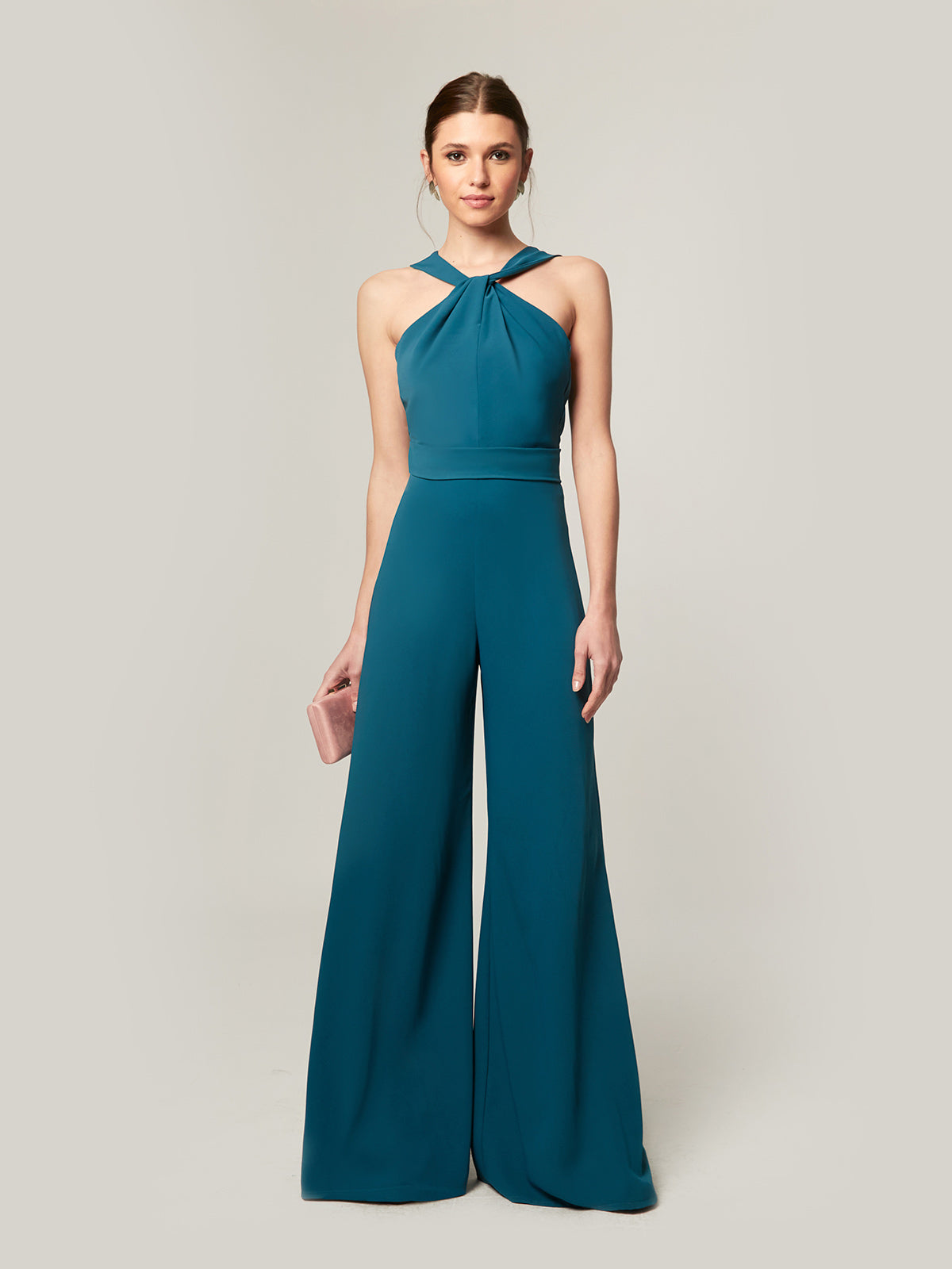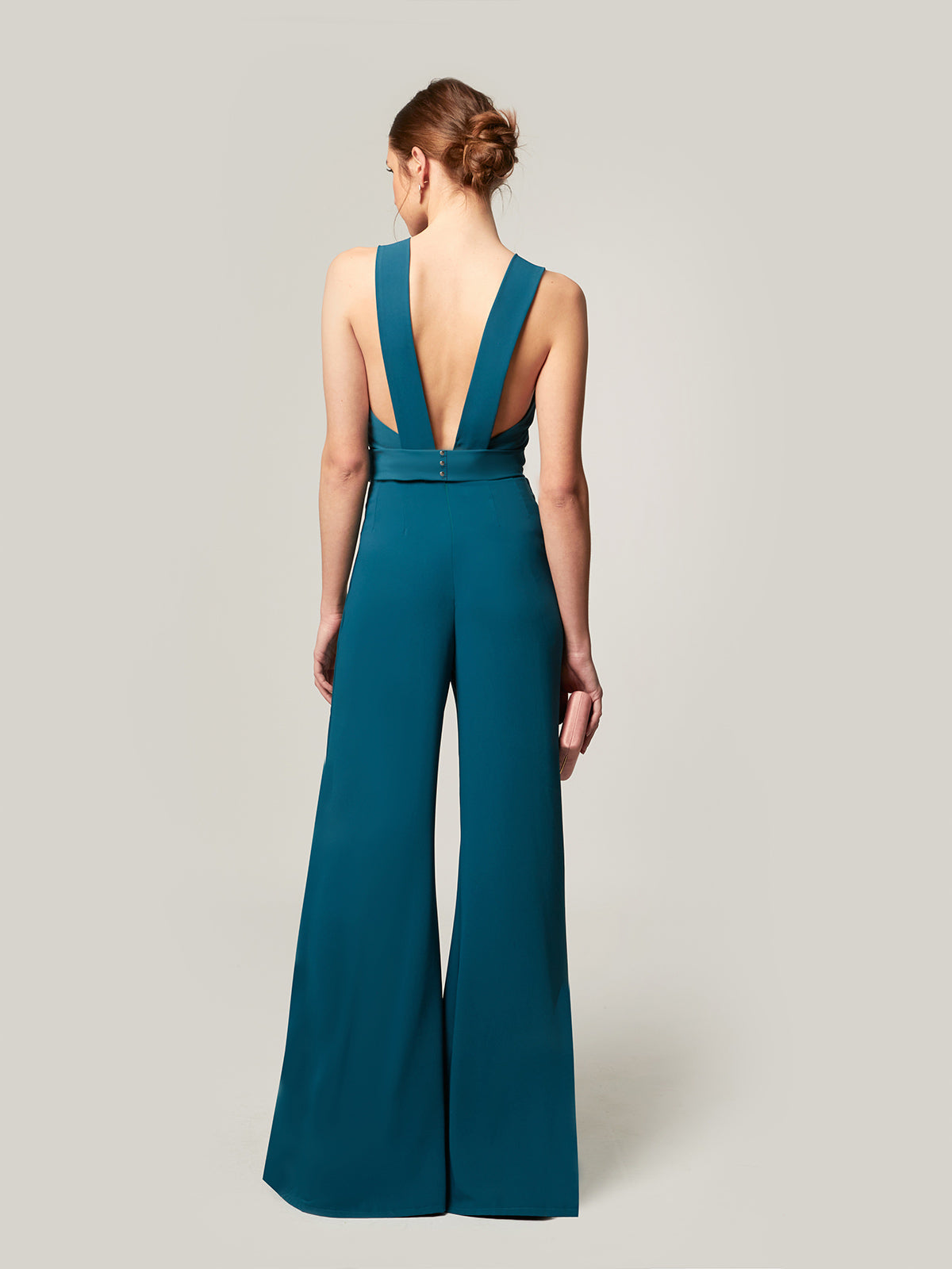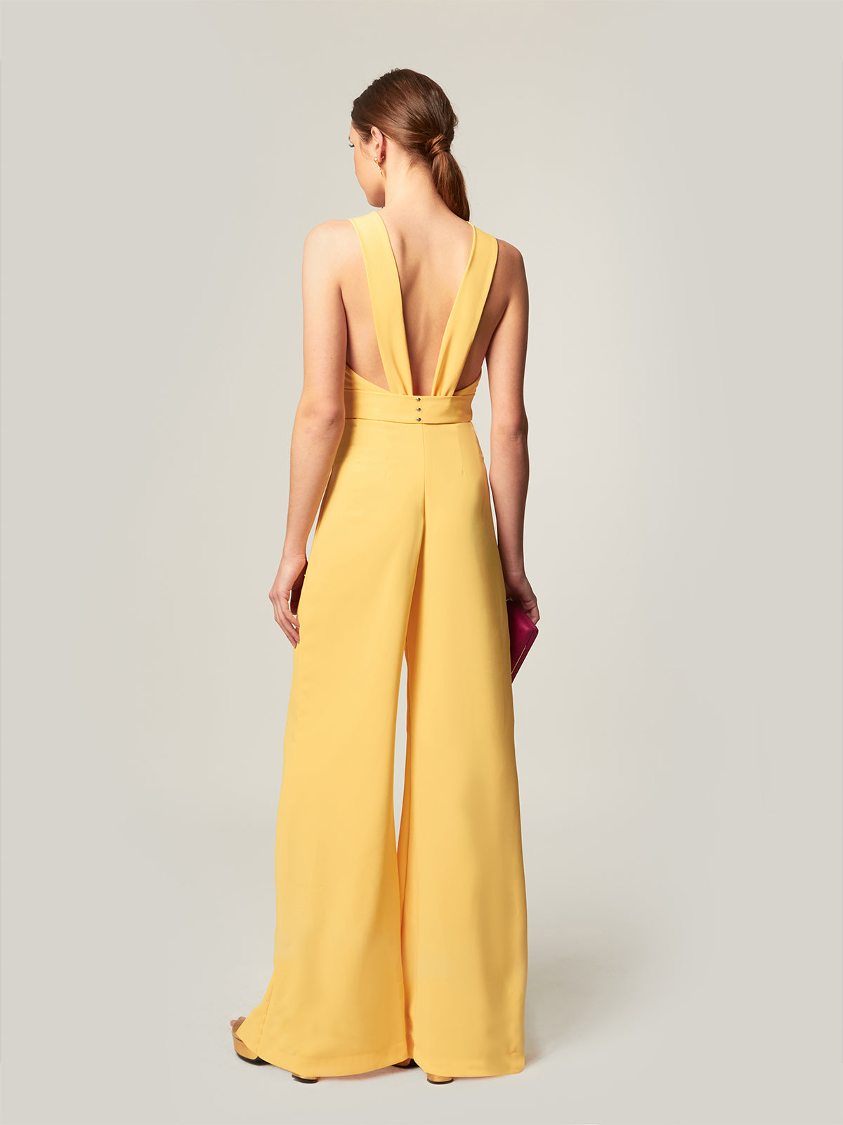 Der Overall Amalia ist ein vielseitiges und raffiniertes Kleidungsstück, das Eleganz und Komfort in einem einzigen Stück vereint und sich ideal für Ihre Tagesveranstaltungen oder Abendfeiern eignet. Mit einem geknoteten Kragen auf der Vorderseite und einem offenen Rücken mit geraden Trägern verleiht sein Design dem Ensemble eine feminine und moderne Note und betont die Figur mit Anmut. Der untere Teil der Palazzohose bietet einen fließenden und schmeichelhaften Fall, der die Silhouette streckt und eine ausgewogene und selbstbewusste Ästhetik schafft. Ein perfektes Stück, um es allein zu tragen oder mit Accessoires für einen kompletten und raffinierten Look zu kombinieren, der sich stilvoll an verschiedene Anlässe anpasst.