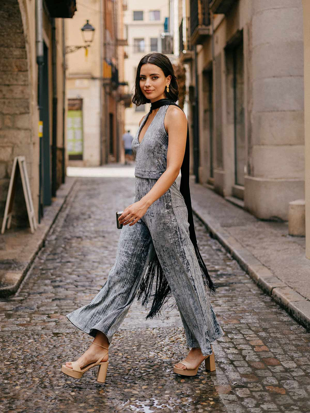 Der Dhalia-Jumpsuit ist ein Stück moderner Eleganz und vielseitiger Raffinesse, entworfen für alle, die bei besonderen Anlässen einen stilvollen und modernen Look suchen. Er ist aus hochwertigem, fließendem Stoff gefertigt und weist eine schmeichelhafte Silhouette auf, die die Figur betont und bei jedem Schritt Komfort und Bewegungsfreiheit bietet. Sein klares und feminines Design schafft eine perfekte Balance zwischen Raffinesse und Natürlichkeit und macht ihn zu einer eleganten Alternative zum traditionellen Kleid. Ideal für Hochzeiten, Feiern oder gesellschaftliche Anlässe, ist er ein Kleidungsstück, das sich durch seinen raffinierten und zeitlosen Stil auszeichnet.