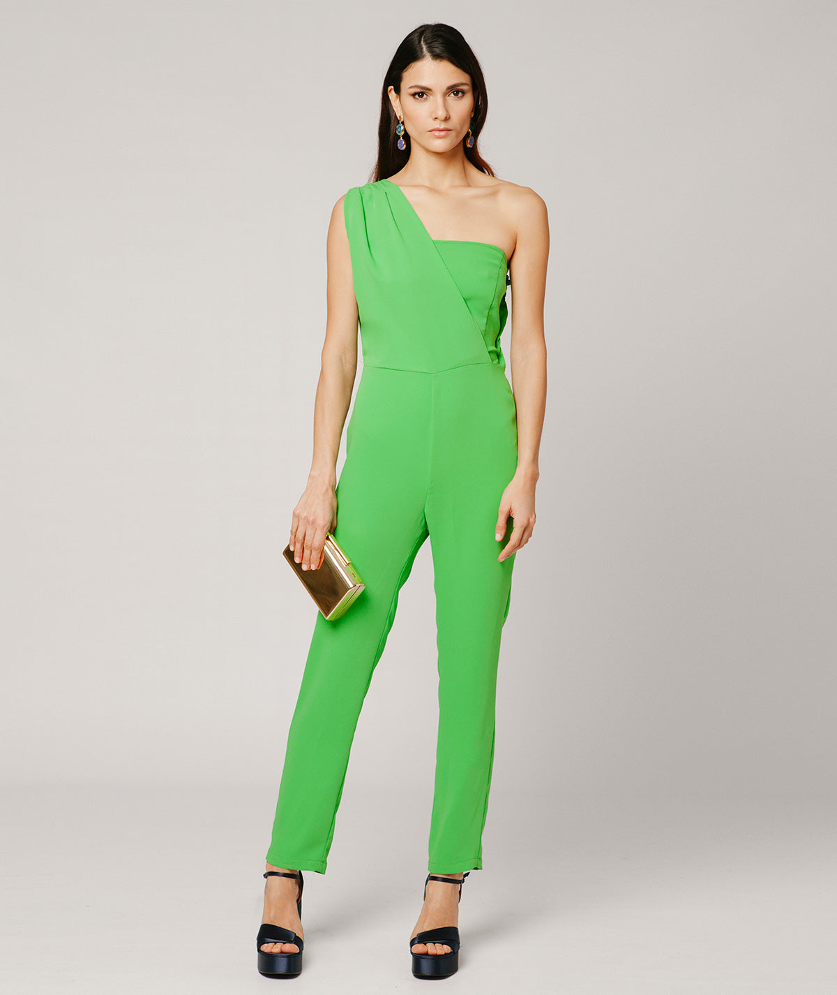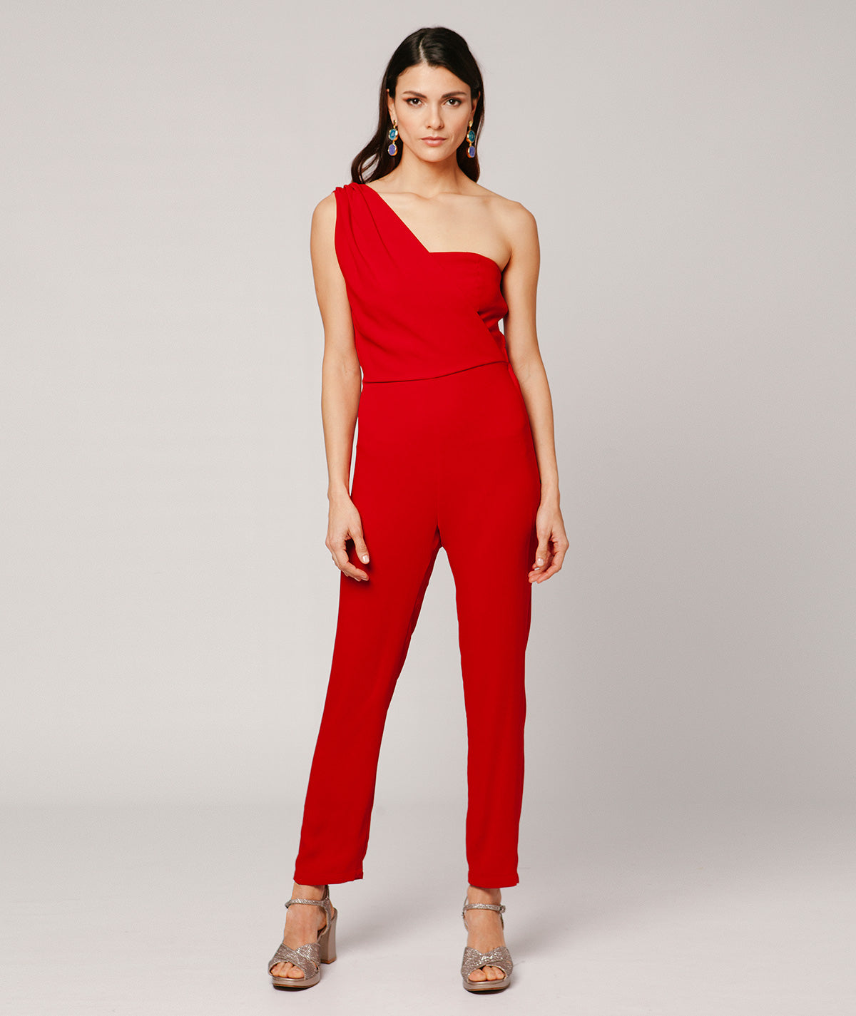 Der May Jumpsuit ist ein Stück zeitgenössischen Stils und zeitloser Raffinesse, entworfen für diejenigen, die bei besonderen Anlässen einen gepflegten und präsenten Look suchen. Hergestellt aus fließendem, hochwertigem Stoff, präsentiert er eine schmeichelhafte Silhouette mit definierter Taille, die die Figur betont und bei jeder Bewegung Komfort bietet. Sein langer Schnitt mit weitem Palazzo-Hosenbein sorgt für einen eleganten und streckenden Abschluss, während die sorgfältig gearbeiteten Details am Ausschnitt und an den Trägern die Weiblichkeit zart unterstreichen. Dieser vielseitige Jumpsuit eignet sich sowohl für Hochzeiten und Tagesfeiern als auch für Abendveranstaltungen und bietet eine perfekte Balance zwischen Raffinesse und Modernität. Ein unverzichtbares Kleidungsstück, wenn Sie einen kompletten und eleganten Look suchen, ohne auf Komfort und Stil zu verzichten.