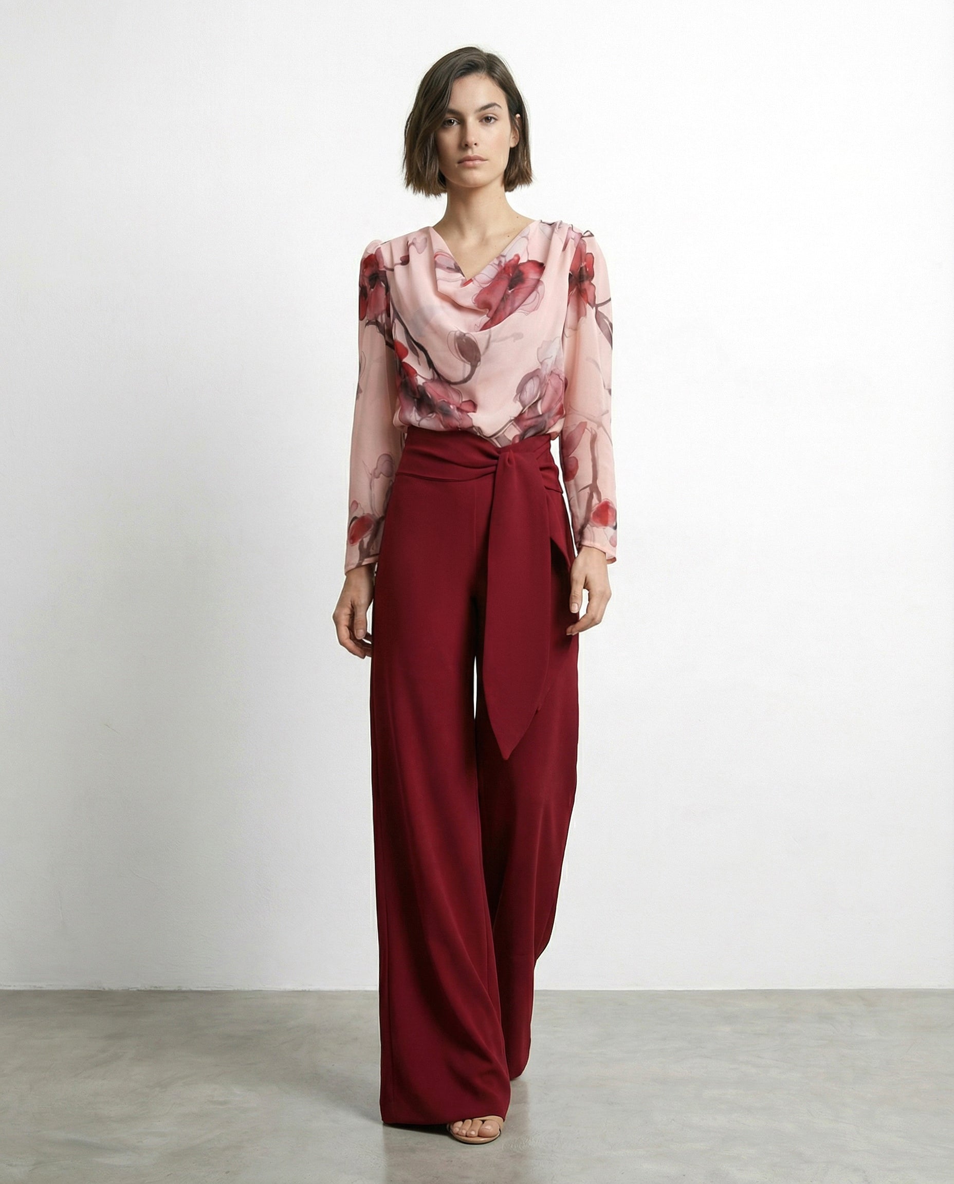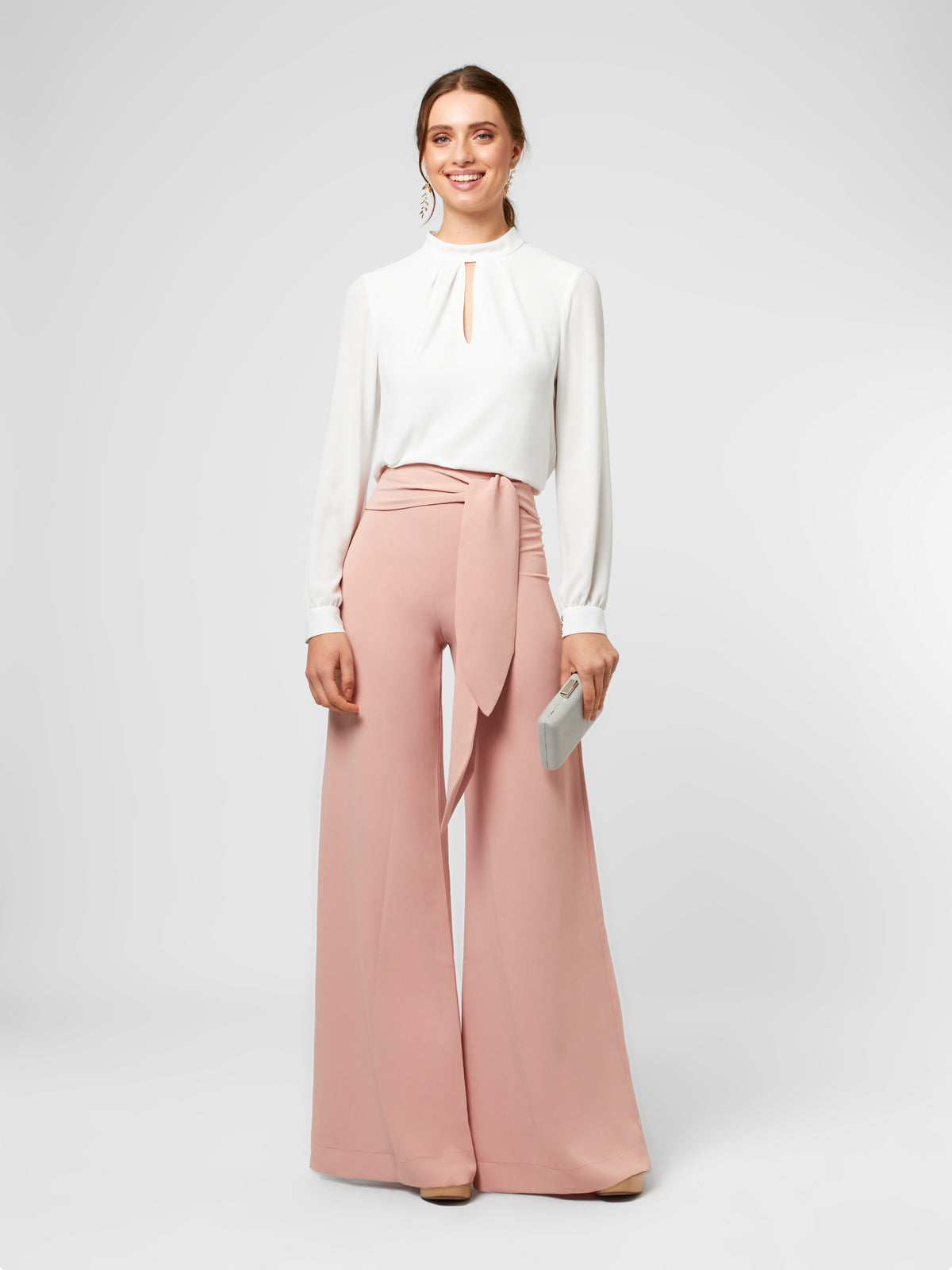 Die Palazzo Hose Candy ist ein raffiniertes und vielseitiges Kleidungsstück, das jedem Look eine moderne und schmeichelhafte Ästhetik verleiht. Gefertigt aus hochwertigem Crêpe und mit einem hochgeschnittenen Palazzo-Schnitt sowie einer vorderen Schleife, streckt sie die Figur und schafft einen optisch verlängernden Effekt, der bei jedem Schritt Eleganz ausstrahlt. Ihr fließender Stoff und die weiten Beine sorgen für sanfte Bewegung und machen sie zu einem unverzichtbaren Basic sowohl für Tagesveranstaltungen als auch für Abendfeiern, wobei sie sich stilvoll an formelle oder entspanntere Looks anpasst.