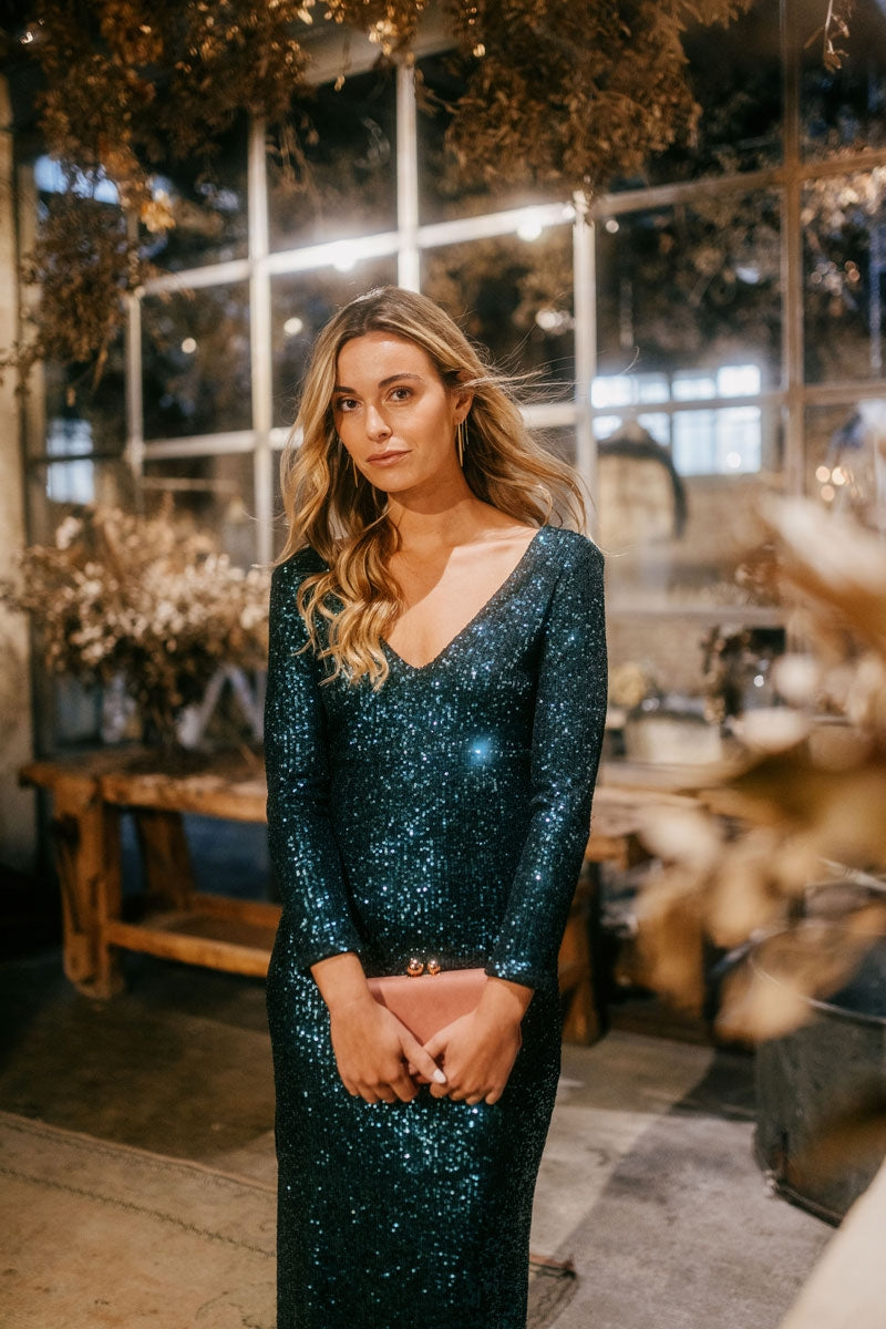 Das Kleid Ada ist ein raffiniertes und feminines Kleidungsstück, das sich durch sein elegantes Design und den Rückenausschnitt auszeichnet. Seine schlanke Silhouette und sein fließender Stoff verleihen ihm Bewegung und Eleganz, was es zur idealen Wahl für besondere Anlässe und Events macht, bei denen man mit einem raffinierten Look glänzen möchte.