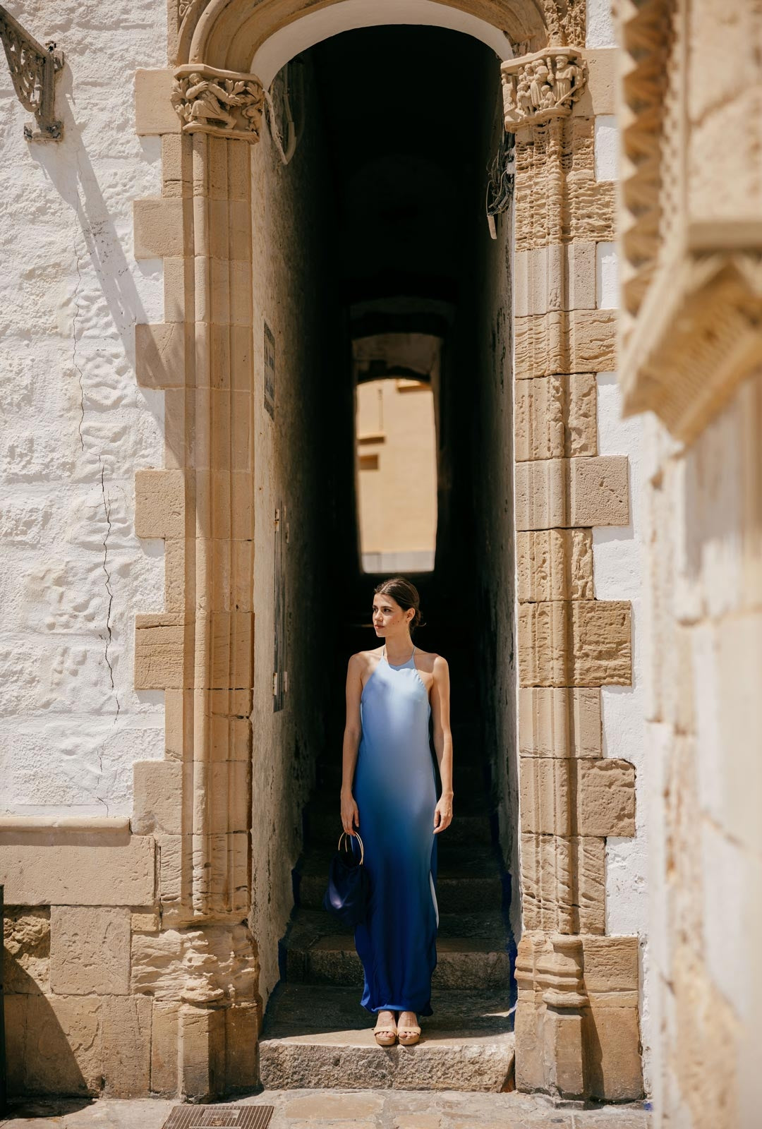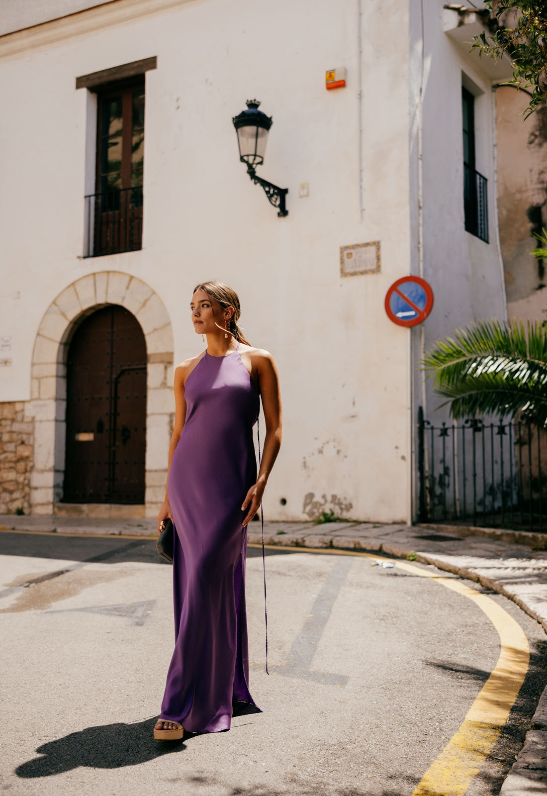 Das Kleid Agatha ist ein Stück moderner Eleganz mit einem sinnlichen Touch, ideal, um bei Ihren Tages- oder Abendveranstaltungen stilvoll aufzufallen. Gefertigt aus hochwertigem Triacetat-Satin, betont sein langer Dessous-Schnitt mit Neckholder-Ausschnitt die Silhouette zart und vorteilhaft und verleiht Raffinesse, ohne an Komfort einzubüßen. Das Design wird durch einen seitlichen Schlitz ergänzt, der Dynamik verleiht und das Bein anmutig enthüllt, während der offene Rücken ein gewagtes und raffiniertes Detail hinzufügt, das dieses Kleidungsstück zu einer idealen Wahl für besondere Anlässe macht.