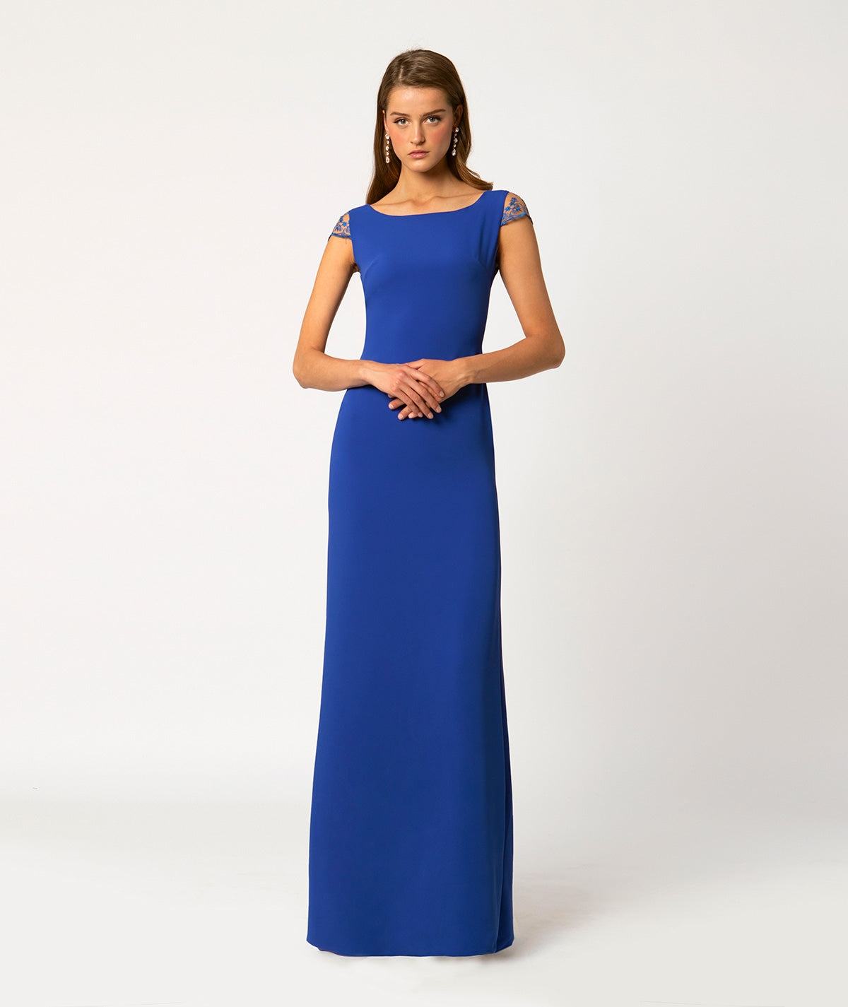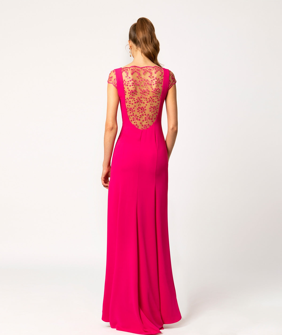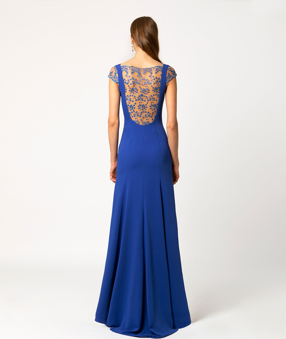 Das Alice-Kleid ist ein zeitloses Stück Eleganz und Weiblichkeit, gefertigt aus hochwertigem Crêpe. Sein langes Design mit leichter Meerjungfrauen-Silhouette schmeichelt der Figur und sorgt für eine zarte und raffinierte Bewegung. Es zeichnet sich durch seinen bestickten Rücken und seinen eleganten Ärmel aus, die einen romantischen und edlen Abschluss bilden. Der Rock mit Godets und schleppenartigem Abschluss verleiht beim Gehen Flüssigkeit und eine majestätische Ausstrahlung. Ein Design, das für einzigartige Anlässe gedacht ist, perfekt kombinierbar mit der Clutch Monterrey, um einen makellosen Look zu vervollständigen.