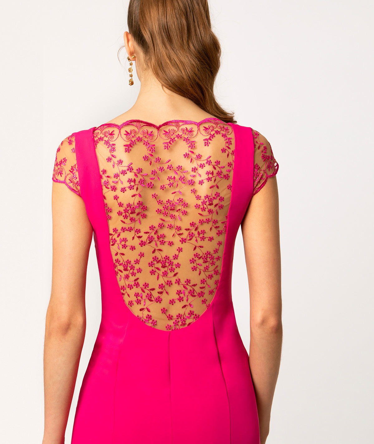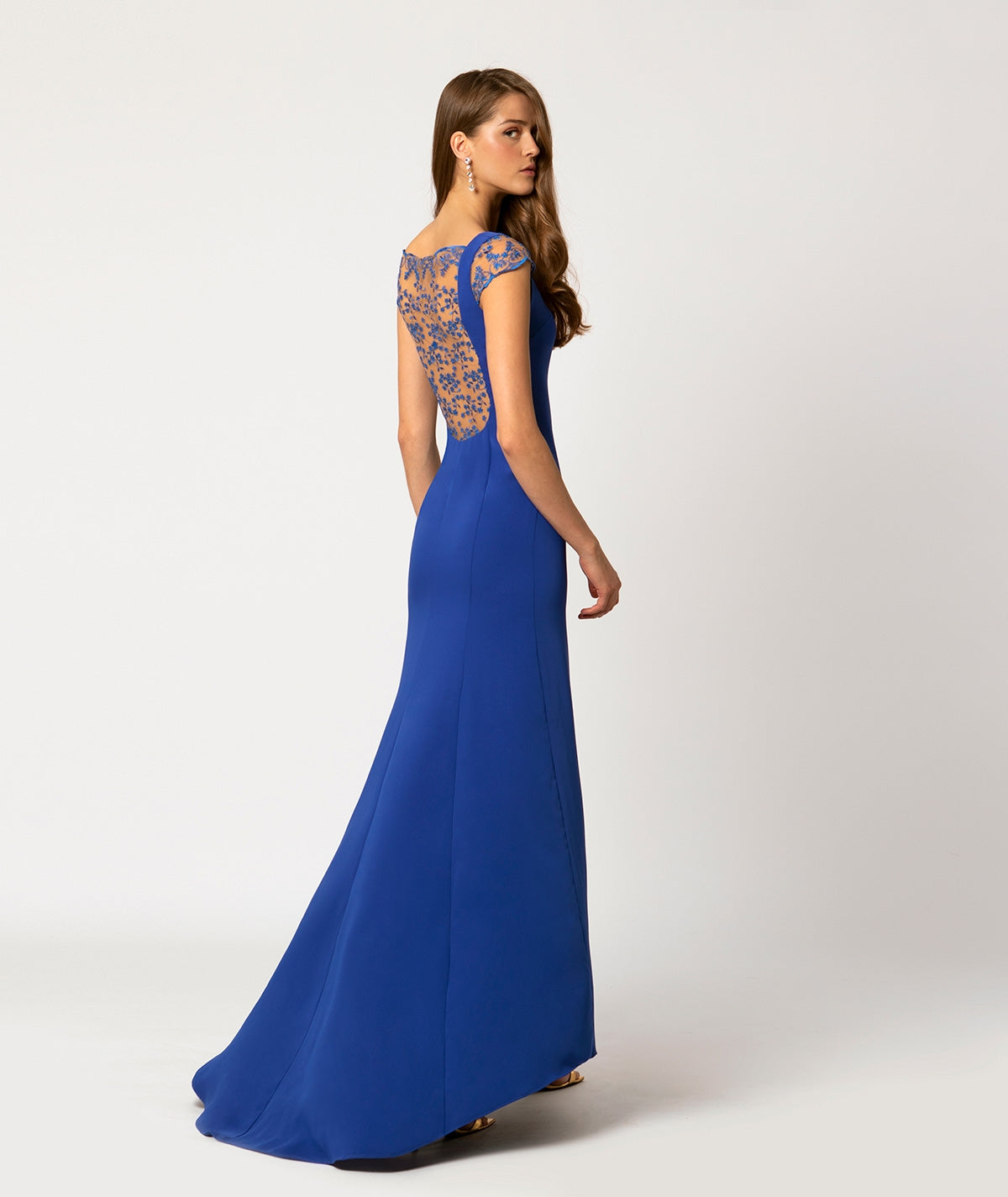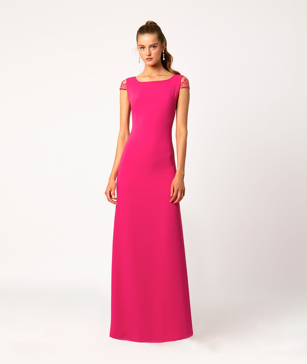 Das Alice-Kleid ist ein zeitloses Stück Eleganz und Weiblichkeit, gefertigt aus hochwertigem Crêpe. Sein langes Design mit leichter Meerjungfrauen-Silhouette schmeichelt der Figur und sorgt für eine zarte und raffinierte Bewegung. Es zeichnet sich durch seinen bestickten Rücken und seinen eleganten Ärmel aus, die einen romantischen und edlen Abschluss bilden. Der Rock mit Godets und schleppenartigem Abschluss verleiht beim Gehen Flüssigkeit und eine majestätische Ausstrahlung. Ein Design, das für einzigartige Anlässe gedacht ist, perfekt kombinierbar mit der Clutch Monterrey, um einen makellosen Look zu vervollständigen.