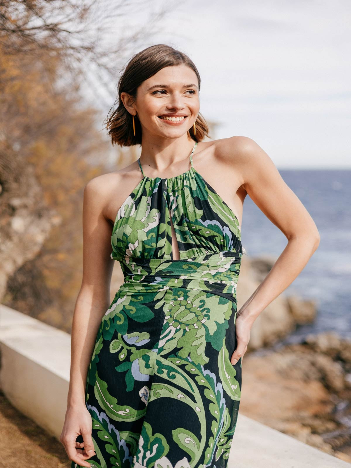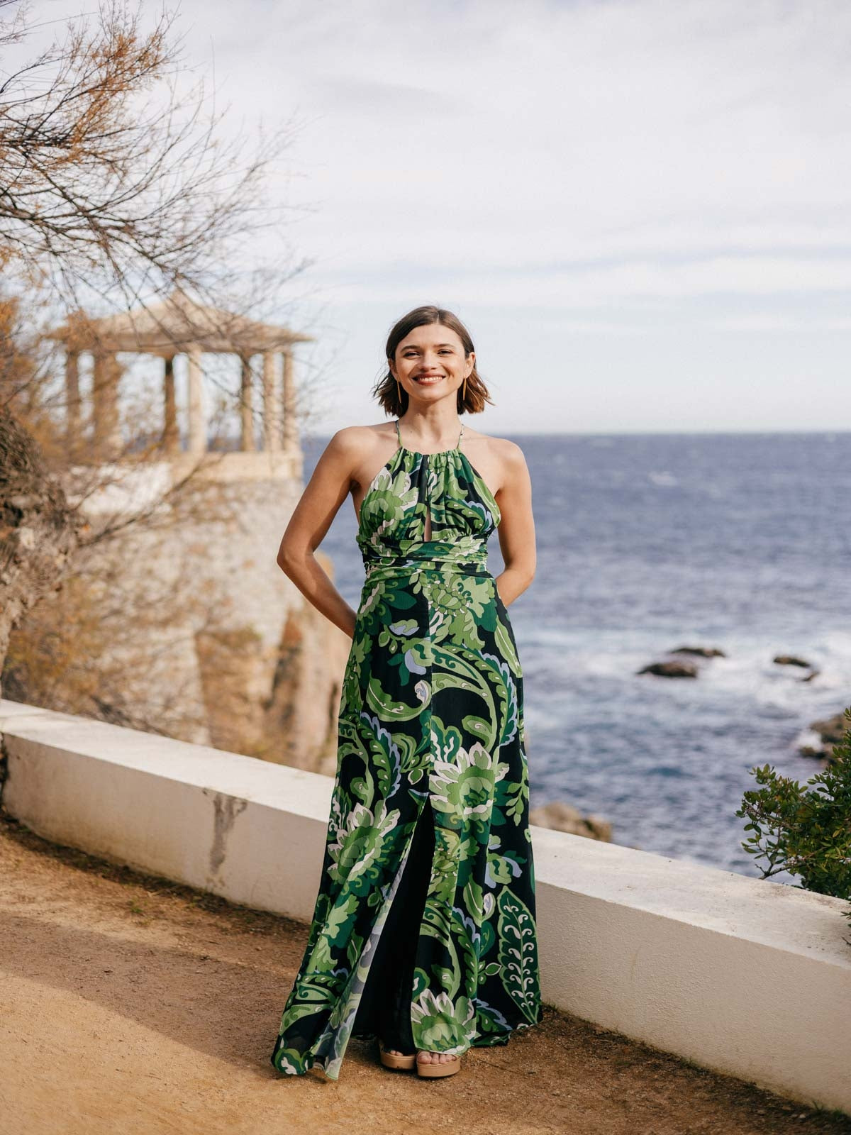 Das Kleid Annette ist ein Stück raffinierter Frische und femininer Eleganz, ideal für Veranstaltungen, bei denen Sie mit Präsenz und Zartheit hervorstechen möchten. Gefertigt aus leichtem bedrucktem Stoff, präsentiert es sich in einem Midi-Schnitt mit einem fließenden Rock, der sich sanft bewegt und Eleganz beim Gehen verleiht. Sein schmeichelhafter Ausschnitt und die diskreten Ärmel betonen die Silhouette, ohne an Komfort einzubüßen, was es zu einer vielseitigen Option für Hochzeiten, Tagesfeiern oder besondere Anlässe macht.