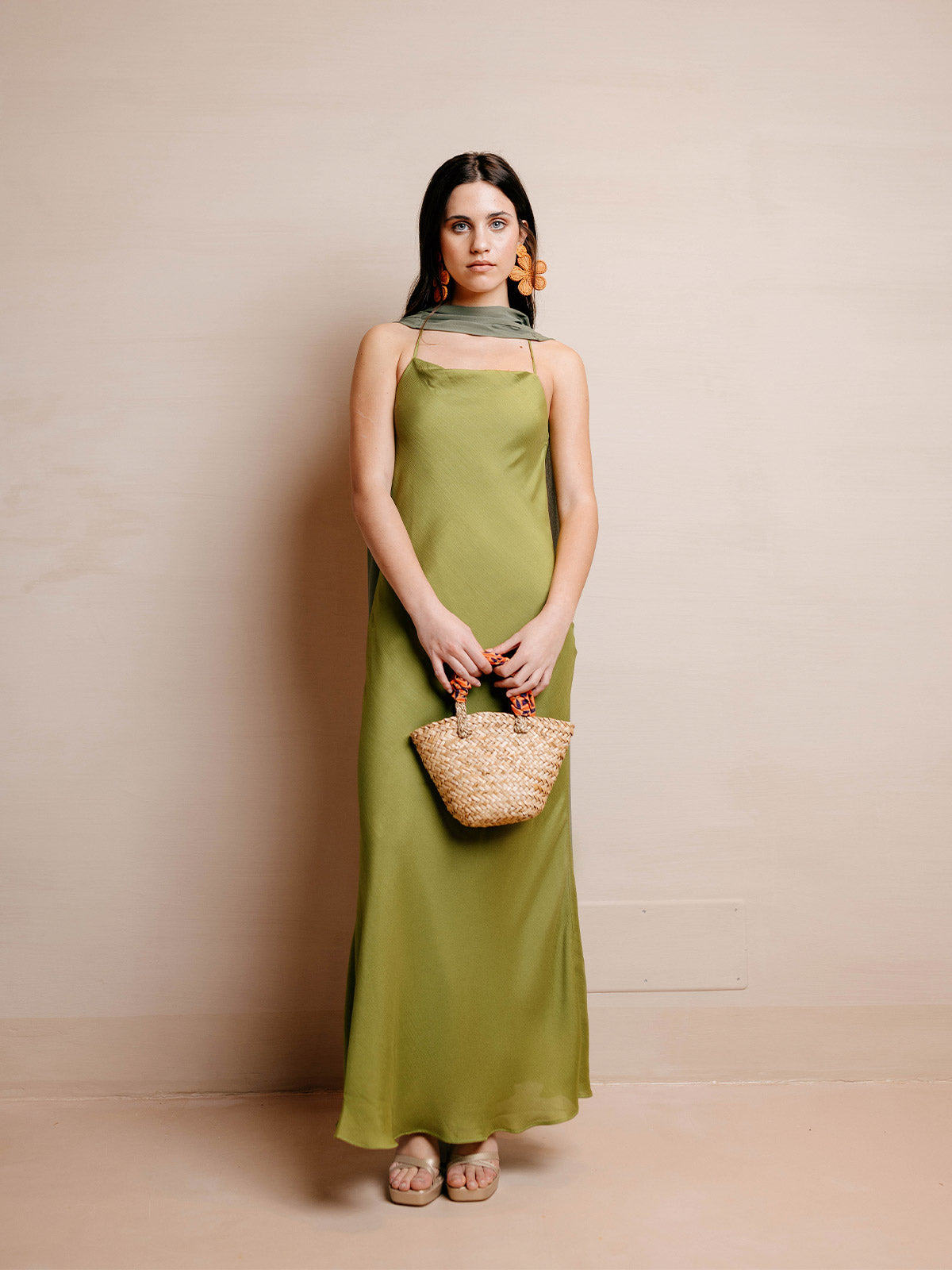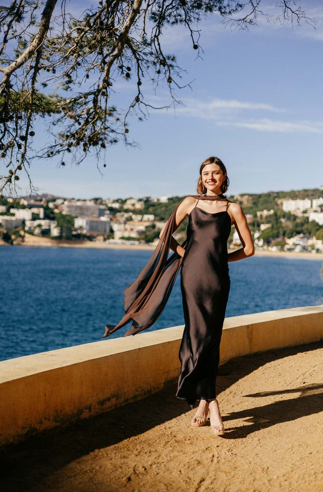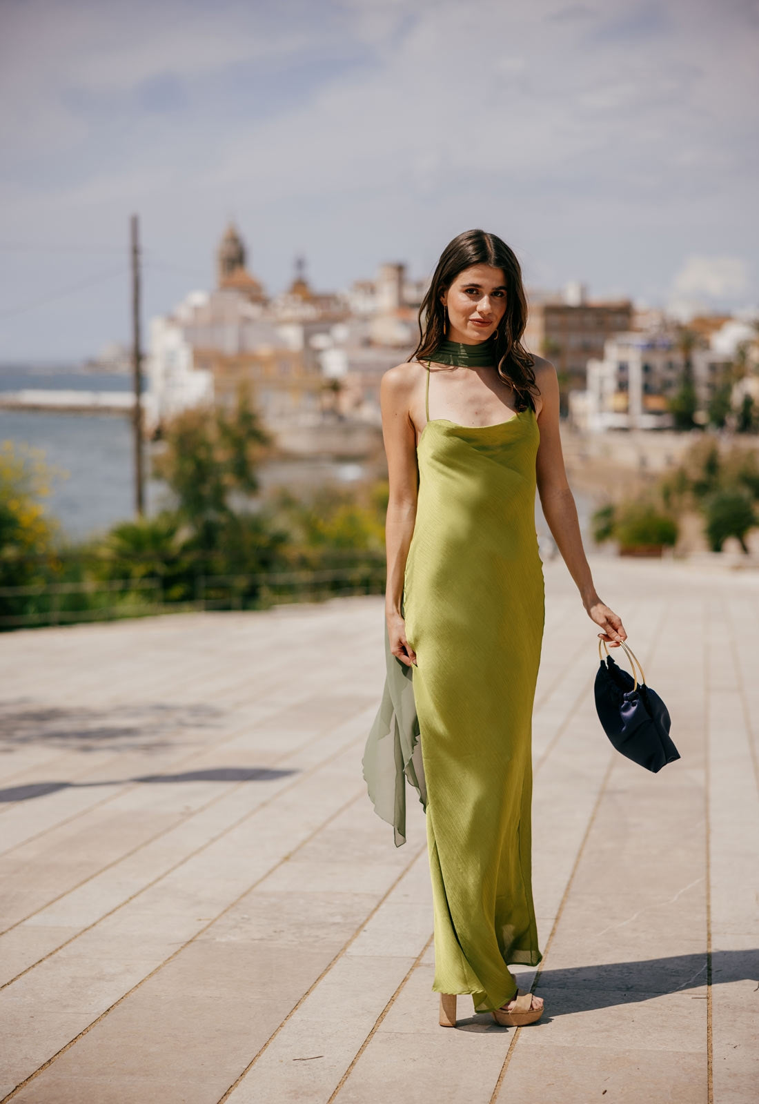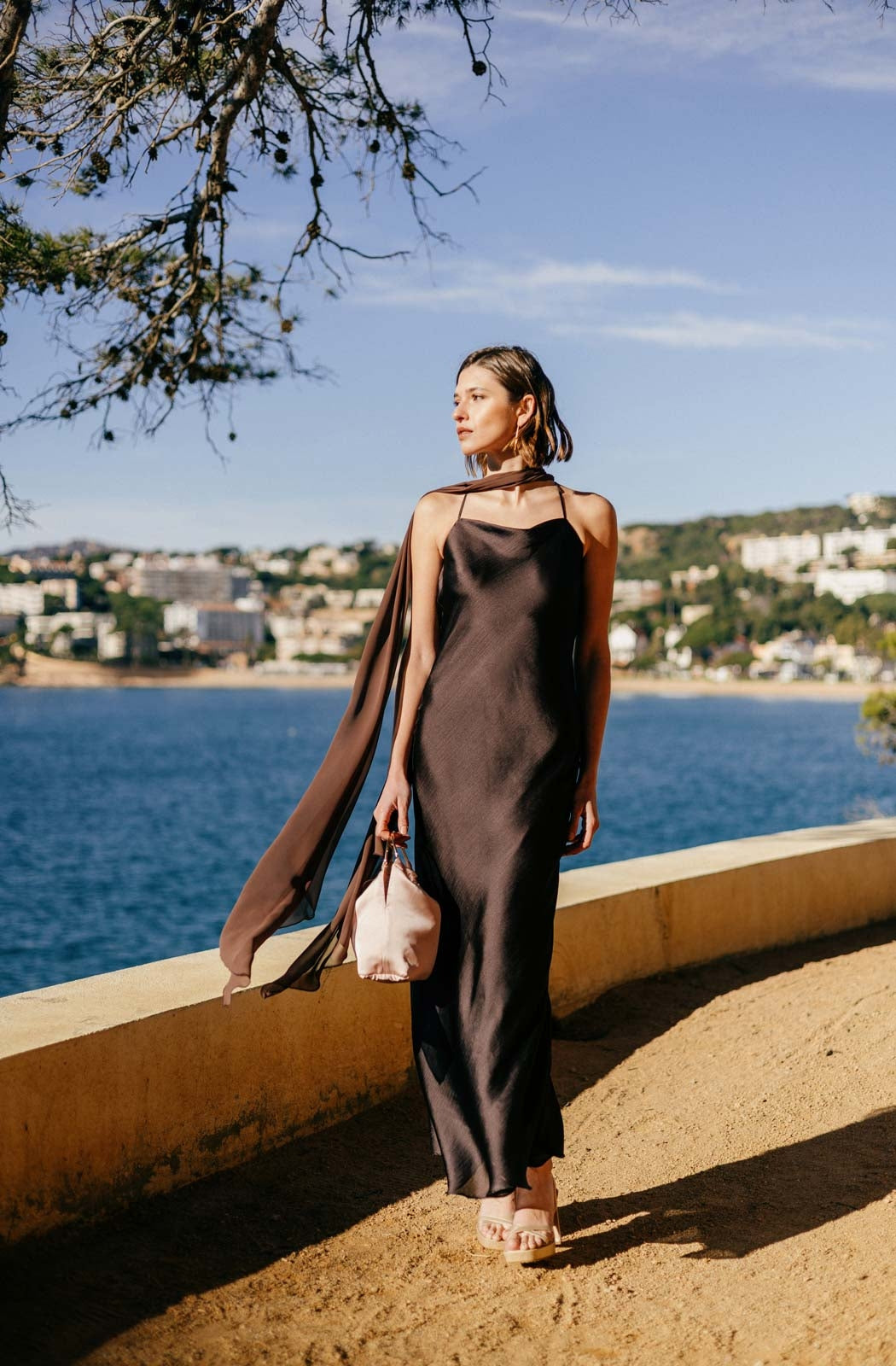 El Vestido Karlie es la definición de minimalismo sofisticado. Confeccionado en tejido ligero y vaporoso, presenta un escote halter que realza el cuello y los hombros, acompañado de una silueta recta y fluida que aporta elegancia natural. Su diseño incluye una capa transparente que añade movimiento y un efecto etéreo al caminar. Una pieza atemporal y refinada, ideal para eventos al atardecer o noches especiales junto al mar.