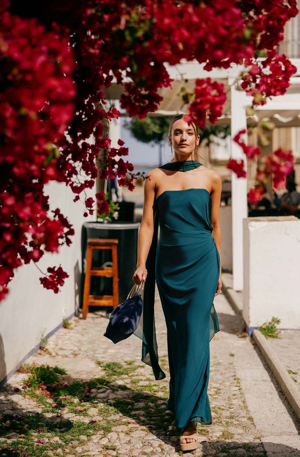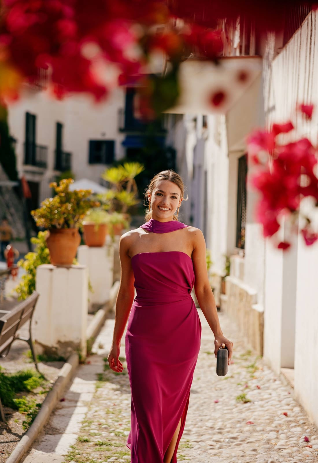 El Vestido Lissette es una pieza de elegancia contemporánea y sofisticación femenina, confeccionado en crepé elástico de alta calidad que se adapta con suavidad a la silueta, aportando comodidad sin renunciar al estilo. Diseñado como vestido midi de palabra de honor con drapeado, realza el escote y crea un efecto favorecedor en el torso, mientras que su caída recta aporta presencia y movimiento al caminar. Incluye choquer integrado, un detalle que aporta un toque adicional de sofisticación y acabado pulido al diseño. Esta pieza versátil es ideal para bodas de día, graduaciones o eventos especiales donde la feminidad refinada es la protagonista.